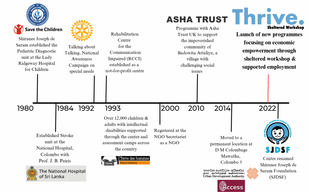 SJDSF (formerly the RCCI), was founded by Shiranee Joseph de Saram, Sri Lanka’s first Speech and Language Pathologist, in 1993 following two decades of experience in the NHS in Sri Lanka and the UK.